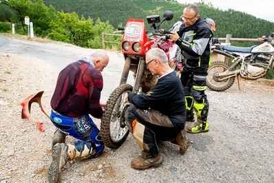 La Moto Les chemins et pistes du PARIS.BIARRITZ sont accessibles de la Yamaha 125 DT des 70's à la surpuissante KTM 1290 R, dans tous les cas un minimum de préparation est nécessaire. Des pneus adaptés, elle aura Piloter un Trail de plus de 200kg dans les chemins avec des pneus à profil routier relève de l’exploit voir de l’impossible si la météo est capricieuse. C’est pour cela que les pneus à profil tout terrain sont obligatoires sur le PARIS.BIARRITZ, nous n’avons pas d’action chez les manufacturiers mais des Continental TKC 80 ou des Michelin Trackers, Anakee Wild restent des valeurs sures. Léger, tu voyageras En tout terrain, le poids est notre premier ennemi, ne vous chargez pas trop, et préférez les sacoches latérales, avec un poids placé plus bas, au gros top case rempli et chargé à bloc. Une révision, tu feras Pour jouer avec les copains jusqu’à l’arrivée, n’oubliez pas de vérifier les filtres à air, niveaux d’huile, kit-chaîne, freins, etc … avant le départ. Soin de ta machine, tu prendras Didier Clerc, copain enduriste et accessoirement médecin globe-trotter avait écrit il y a une dizaine d’année un bon article toujours d’actualité, il est à lire ici. Le pilote Casque, gants homologués et bottes de motos sont obligatoires. Les protections aux coudes, genoux et dorsales sont vivement conseillées, en général l’achat vient après la première chute, gagnez du temps équipez-vous avant ! Vous serez moins fatigués en adoptant un ensemble pantalon / veste typé tout terrain. Les sacs à dos avec pochette type camelback sont pratiques et permettent de s’hydrater tout au long de la journée. Vous pourrez les remplir avec de l'eau à notre tente du départ. Bonus à lire sans modérations les dix conseils rando en image. (Source Moto Verte ou Moto Crampons du siècle dernier). |